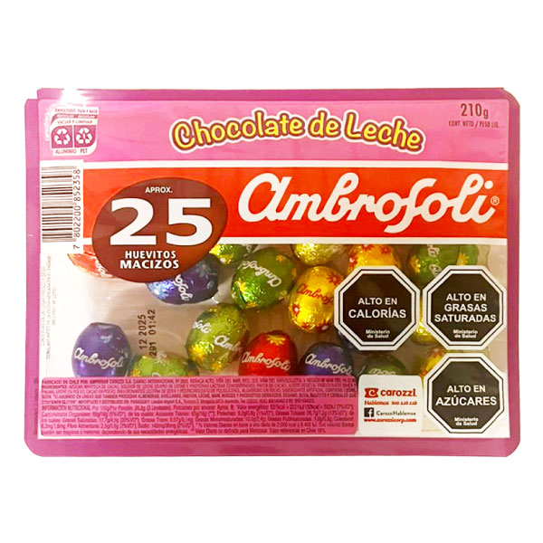 Huevitos de chocolate macizo Ambrosoli bandeja 25 uds cantidad