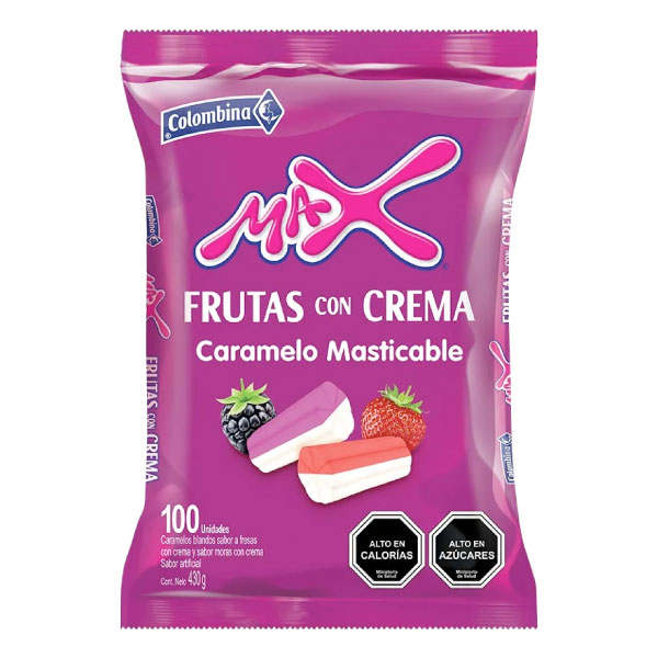 Masticables Max frutas con crema 430gr bolsa 100 uds
